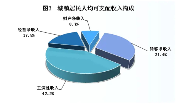全市城鎮(zhèn)居民人均可支配收入33639元,比上年增加1663元,增長5.2%。其中,工資性收入14181元,增長5.0%,占可支配收入的比重為42.2%;經(jīng)營凈收入5995元,增長4.7%,占比17.8%;財產(chǎn)凈收入2910元,增長5.8%,占比8.7%;轉(zhuǎn)移凈收入10553元,增長5.6%,占比31.4%。T44安康新聞網(wǎng)