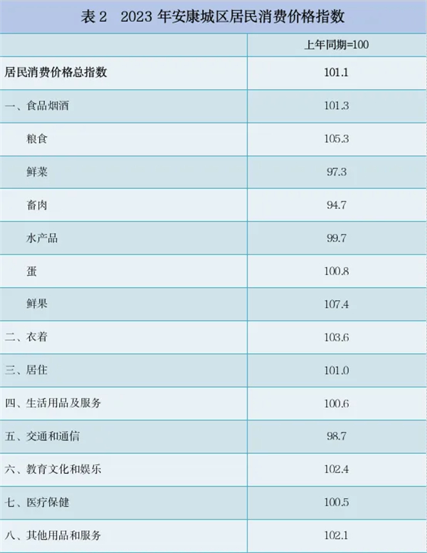 2023年,安康城區(qū)居民消費價格比上年上漲1.1%。T44安康新聞網(wǎng)