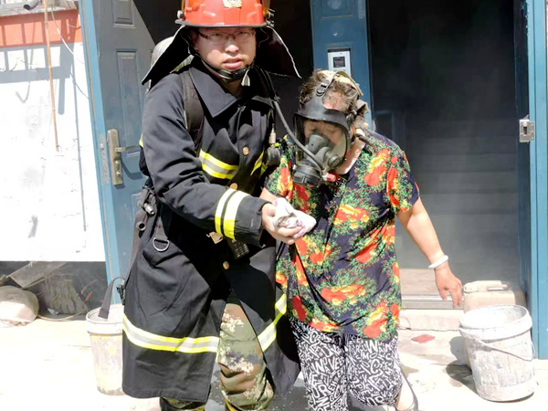 當找到被困的老人和嬰兒時,房間里已有煙霧涌入,多耽誤一秒就多一分危險。由于嬰兒呼吸力度較弱,他救呼吸面罩無法觸發(fā)供氣,而高壓送風或直接穿越煙霧層均可能造成窒息。李治隨即摘掉自己的呼吸器面罩,調低呼吸器送氣量,將面罩虛掩在嬰兒面部,抱緊嬰兒一路狂奔下樓,僅用3分鐘就將孩子安全交到家長手中。