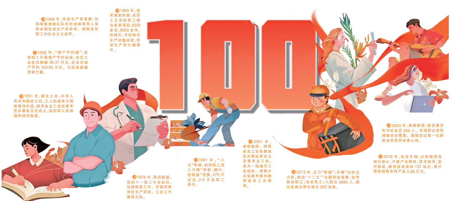 2025年,是全國總工會成立100周年,作為工人階級和廣大勞動群眾的堅強后盾,全國總工會為我國的社會進步和經(jīng)濟發(fā)展做出了不可磨滅的貢獻。安康工運事業(yè)從1925年漢水畔第一聲“勞工萬歲”的吶喊,到深度參與三線建設(shè)、脫貧攻堅、生態(tài)經(jīng)濟等重大戰(zhàn)略,再到新時代百萬職工投身幸福安康建設(shè)的鏗鏘步履,始終與黨的事業(yè)血脈相連,與城市發(fā)展同向同行。