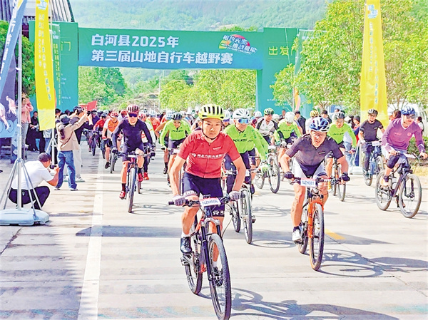 5月1日,白河縣“相約天寶·挑戰(zhàn)極限”第三屆山地自行車越野賽在天寶農(nóng)園景區(qū)舉辦,來(lái)自廣東、廣西、四川、湖北等7省市的160余名男女運(yùn)動(dòng)員和騎行愛(ài)好者參與其中。朱明富 攝