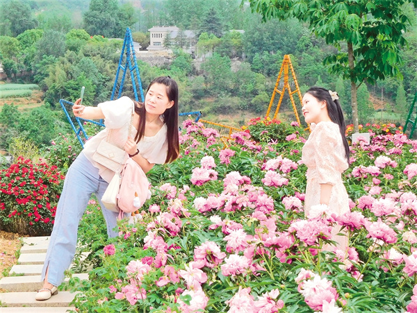 “五一”假期,漢陰縣花遇灣牡丹園迎來(lái)旅游高峰。圖為游人在花叢中打卡拍照,盡享游園樂(lè)趣。 趙波 攝