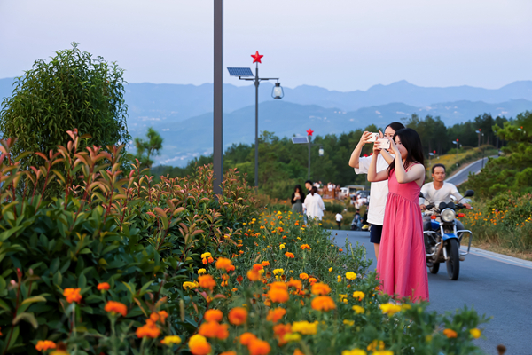 漢濱區(qū)牛嶺社區(qū)花海步道吸引游客打卡拍照。 周濬 攝