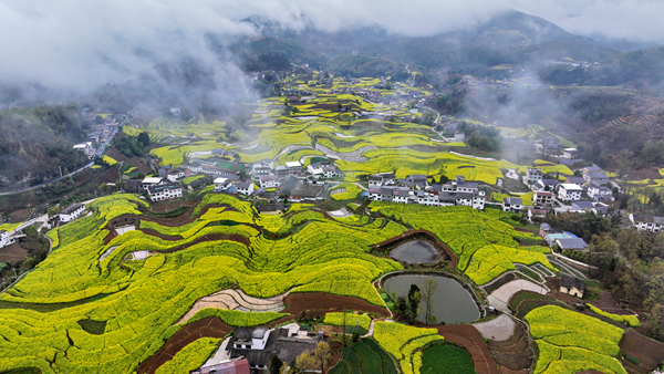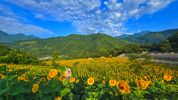 嵐皋縣城關(guān)鎮(zhèn)茅坪村的油葵競相開放。 屈蘭平 攝