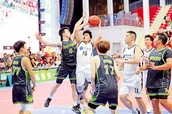 安康企協(xié)桃花源代表隊(duì)在外籍球員CJ·特羅特和賈森·漢尼拔的帶領(lǐng)下一度領(lǐng)先12分,南宮山代表隊(duì)球員在主力隊(duì)員梁歡、朱思禹先后受傷的不利局面下,由彭博帶領(lǐng)球隊(duì)艱難咬住比分。距離全場(chǎng)比賽結(jié)束9.8秒,南宮山代表隊(duì)3號(hào)隊(duì)員李子豪外線一記精準(zhǔn)的3分把比分追至78平,這是兩隊(duì)比分首次打平。CJ·特羅特后場(chǎng)接球,直插籃下,轉(zhuǎn)身后仰,將比分反超2分,留給南宮山隊(duì)3.2秒。南宮山代表隊(duì)4號(hào)球員彭博一記長(zhǎng)傳跨過(guò)半場(chǎng),精準(zhǔn)找到了6號(hào)球員韓邦,上籃,80分平,加時(shí)賽,球場(chǎng)響起山呼海嘯的歡呼。加時(shí)賽中,南宮山代表隊(duì)用一次次精準(zhǔn)的投籃、拼盡全力的防守,最終以93:88的比分奪得冠軍。