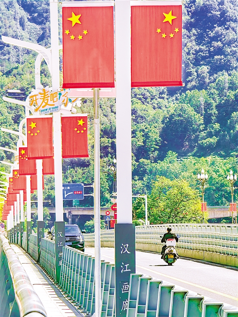 紫陽(yáng)城區(qū)的街頭巷尾,一面面鮮艷的五星紅旗迎風(fēng)招展,處處洋溢著祥和的節(jié)日氛圍。
