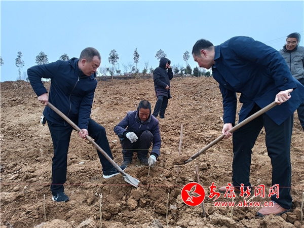 在楊莊社區(qū)桑海田園、梁溝村蠶桑園區(qū)指導春季桑園管理技術(shù)。在老灣村新栽桑地塊,查看調(diào)運桑苗假植情況,講授苗木栽植前修剪技術(shù)。按照“9215”糧桑套種栽植模式,在去年冬季開挖栽植溝寬行9尺、窄行2尺、株距1.5尺及施肥回土的基礎上,現(xiàn)場指導拉線排苗挖窩栽苗雍土澆水等關(guān)鍵性栽桑技術(shù)操作,拉開恒口示范區(qū)春季新建桑園開工序幕。