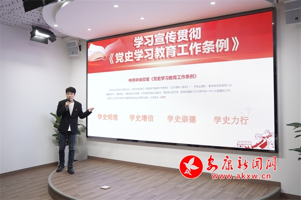 活動中,市委黨校青年教師分享《中國共產(chǎn)黨陜西安康歷史》第一卷(1921-1950),講述新民主主義革命時(shí)期的安康黨史,通過情景演繹再現(xiàn)安康紅色革命歷史中的英雄人物,從紅色文化遺存、革命先輩感人事跡中闡釋中國共產(chǎn)黨初心使命,引人深思、催人奮進(jìn)。