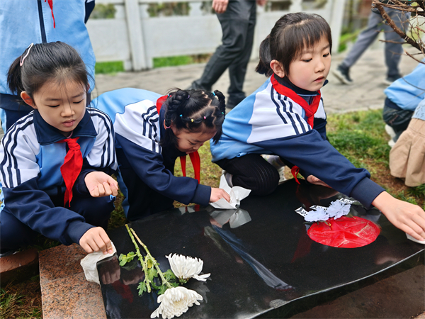 隨后少先隊員們在老師帶領下來到烈士陵園。隊員們拿起手中的抹布為革命先烈們擦拭墓碑,并號召同學們學習英雄先輩的紅色故事,時刻準備著,努力成長為能夠擔當民族復興大任的時代新人。 最后,隊員們有序地參觀牛蹄嶺戰(zhàn)役紀念館,親身走近歷史,深刻體會革命志士的信仰和初心。