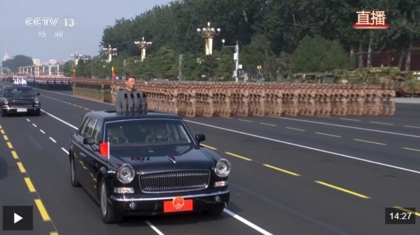 在雄壯的軍樂聲中,習近平乘車沿著寬闊的長安街,依次檢閱徒步方隊和裝備方隊。