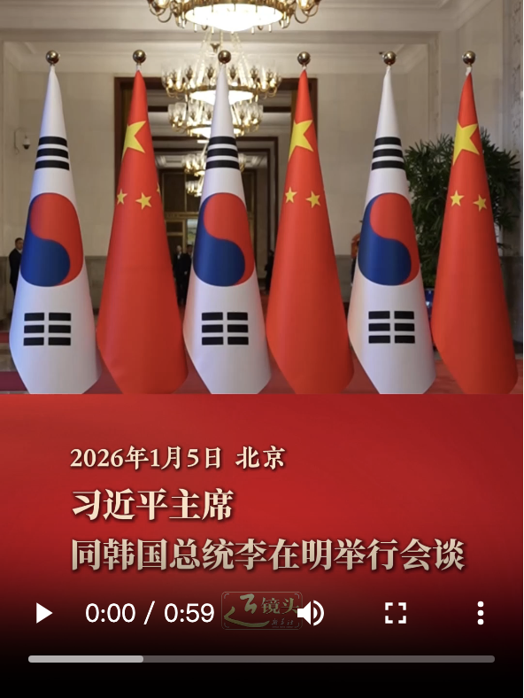 1月5日下午,國家主席習(xí)近平在北京人民大會(huì)堂同來華進(jìn)行國事訪問的韓國總統(tǒng)李在明舉行會(huì)談。去年11月1日,習(xí)近平主席同李在明總統(tǒng)在韓國慶州舉行會(huì)談。時(shí)隔短短兩個(gè)多月,中韓兩國元首實(shí)現(xiàn)互訪。