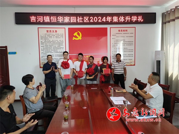 8月16日,漢濱區(qū)吉河鎮(zhèn)恒華家園社區(qū)舉行“弘揚新民風 拒絕升學宴”大學新生集體升學禮活動,為4名本科大學新生發(fā)放了助學金和紀念品,并簽訂了“弘揚新民風 拒絕升學宴”承諾書,用集體升學禮代替“升學宴”,爭做拒絕“升學宴”的踐行者和推動者,營造健康文明、勤儉節(jié)約的良好社會新風尚。(圖文/劉化梅) jzp安康新聞網