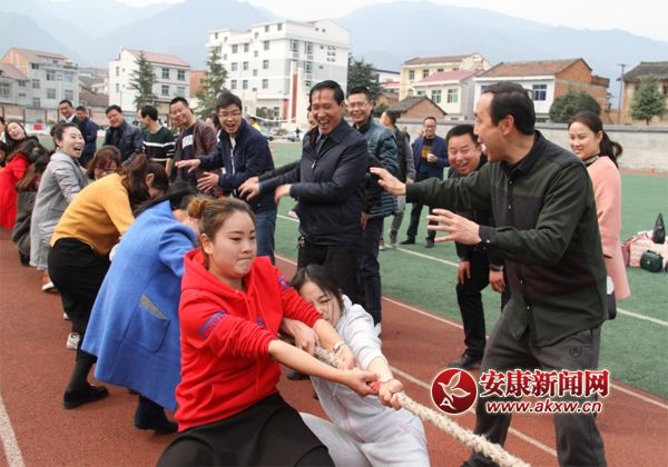 趣味游戲活動從早上9時開始,跳繩、踩氣球、雙腿夾球接力等九個趣味項目同時在操場上指定區(qū)域進(jìn)行,最后的“女子拔河比賽”、“男女混合籃球賽”把慶祝活動推向了高潮。