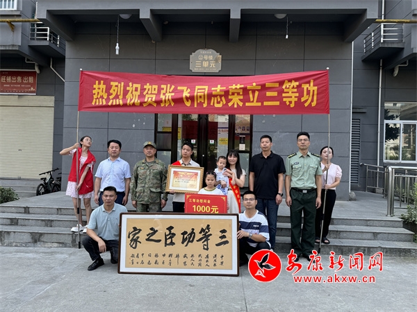 本網(wǎng)訊(通訊員 張輝)8月1日,八一建軍節(jié)當天,漢陰縣城關鎮(zhèn)聯(lián)合縣人民武裝部、縣退役軍人事務局為轄區(qū)4名榮立“三等功”的現(xiàn)役軍人送上立功喜報和慰問金,把黨和政府的關心關愛送到軍人軍屬心坎上。