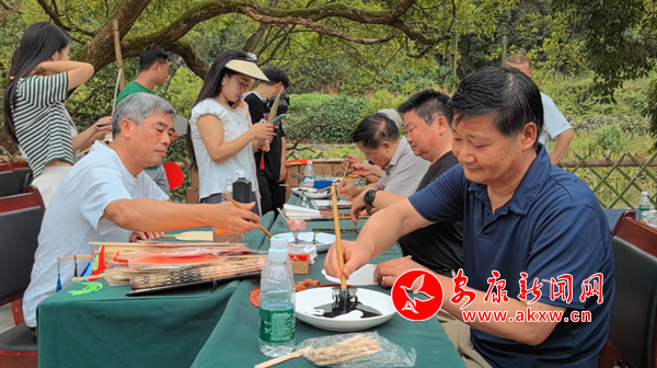 活動(dòng)現(xiàn)場(chǎng),8位漢陰本土?xí)覔]毫潑墨、筆走龍蛇,為到場(chǎng)嘉賓和游客書(shū)寫(xiě)、贈(zèng)送書(shū)法作品,案幾前擠滿圍觀人群。一幅幅寓意美好、字體優(yōu)美、散發(fā)著墨香的書(shū)法作品,引得眾人連連稱贊,紛紛拍照打卡。