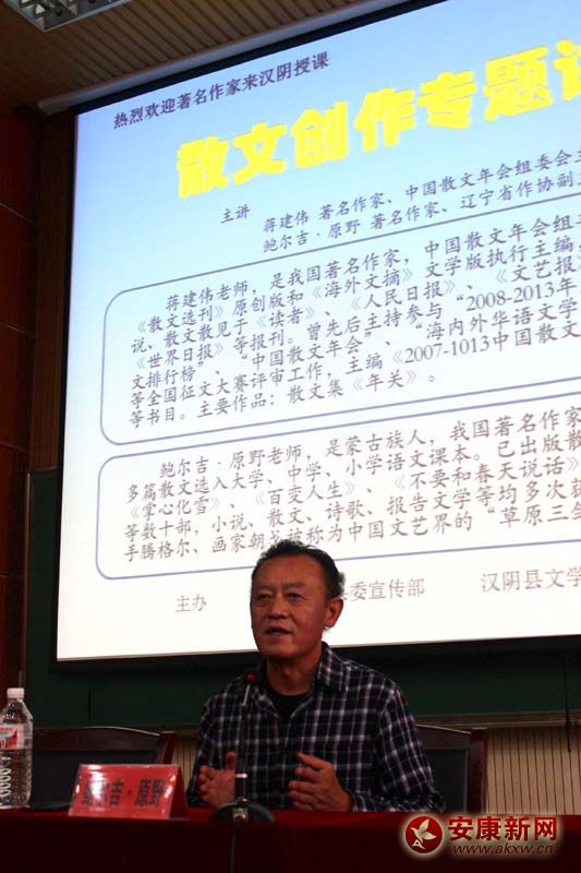安康新網(wǎng)訊 通訊員 姜波:金秋送爽,文苑芬芳。9月9日,漢陰中學(xué)階梯教室坐無虛席,300余雙渴求知識的眼睛聚焦在著名作家鮑爾吉•原野和蔣建偉兩位老師的精彩……