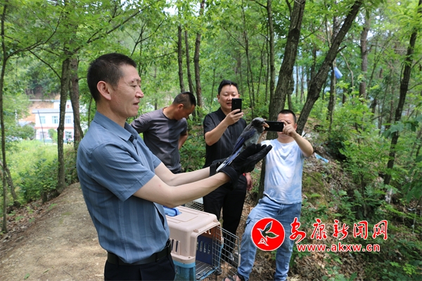 本網(wǎng)訊(通訊員 蘇鴻浩 趙濱源 劉秋洪)6月12日,嵐皋縣林業(yè)局野生動(dòng)植物保護(hù)管理站工作人員將群眾發(fā)現(xiàn)的兩只國(guó)家二級(jí)保護(hù)動(dòng)物灰林鸮、斑頭鵂鹠,一只三有保護(hù)動(dòng)物紅嘴藍(lán)鵲和一只省重點(diǎn)保護(hù)動(dòng)物果子貍放歸山林。