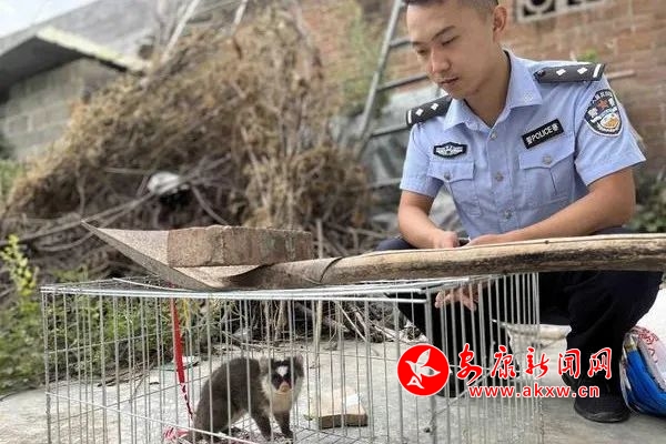 當(dāng)日中午,呂河派出所接到群眾報(bào)警稱,“在其家中鐵籠里關(guān)了一只像果子貍的野生動(dòng)物,請(qǐng)求幫助。”接警后,值班民警迅速帶隊(duì)前往處置。到達(dá)現(xiàn)場后,民警看到了這只“不速之客”,是一只灰褐色皮毛的小動(dòng)物,臉?biāo)坪,嘴似豬,花白面,時(shí)不時(shí)上躥下跳,身體狀況還不錯(cuò)。民警經(jīng)過仔細(xì)比對(duì)和觀察,并經(jīng)林業(yè)部門工作人員確認(rèn),發(fā)現(xiàn)該動(dòng)物并非果子貍,而是一只鼬獾,屬于國家三級(jí)保護(hù)動(dòng)物。