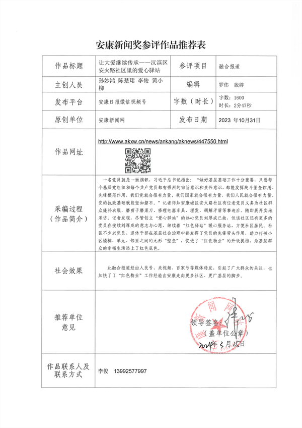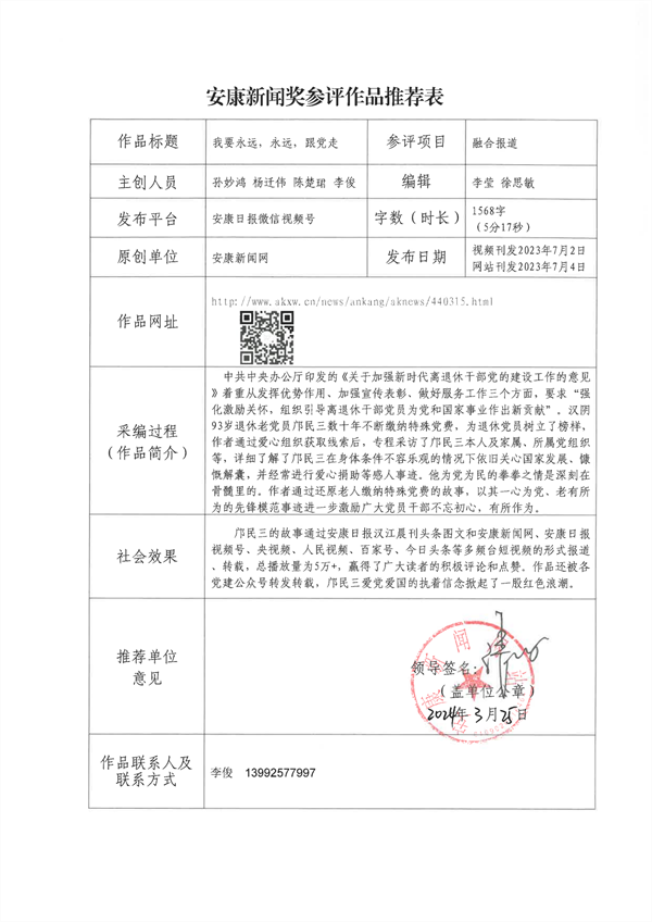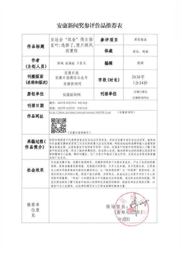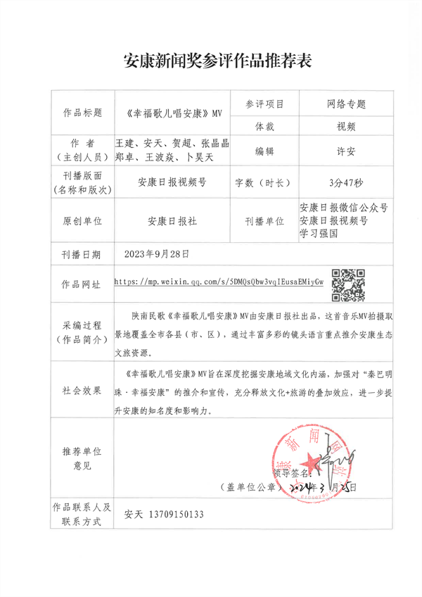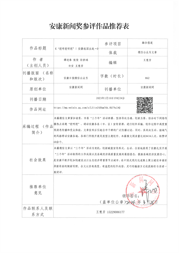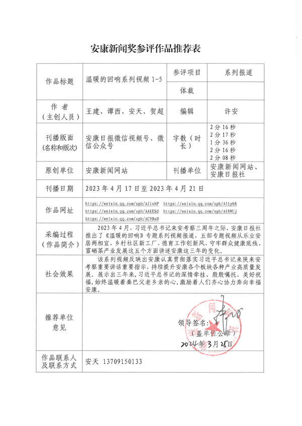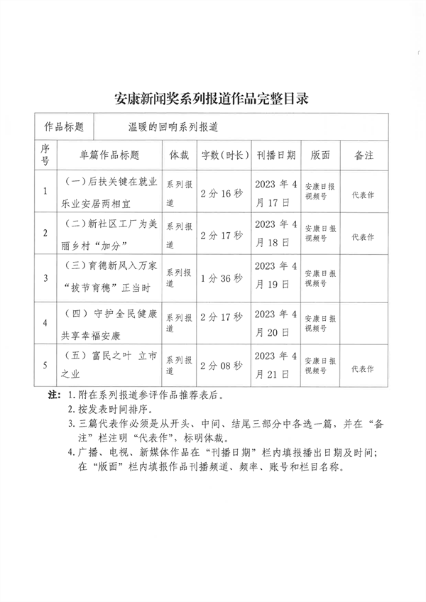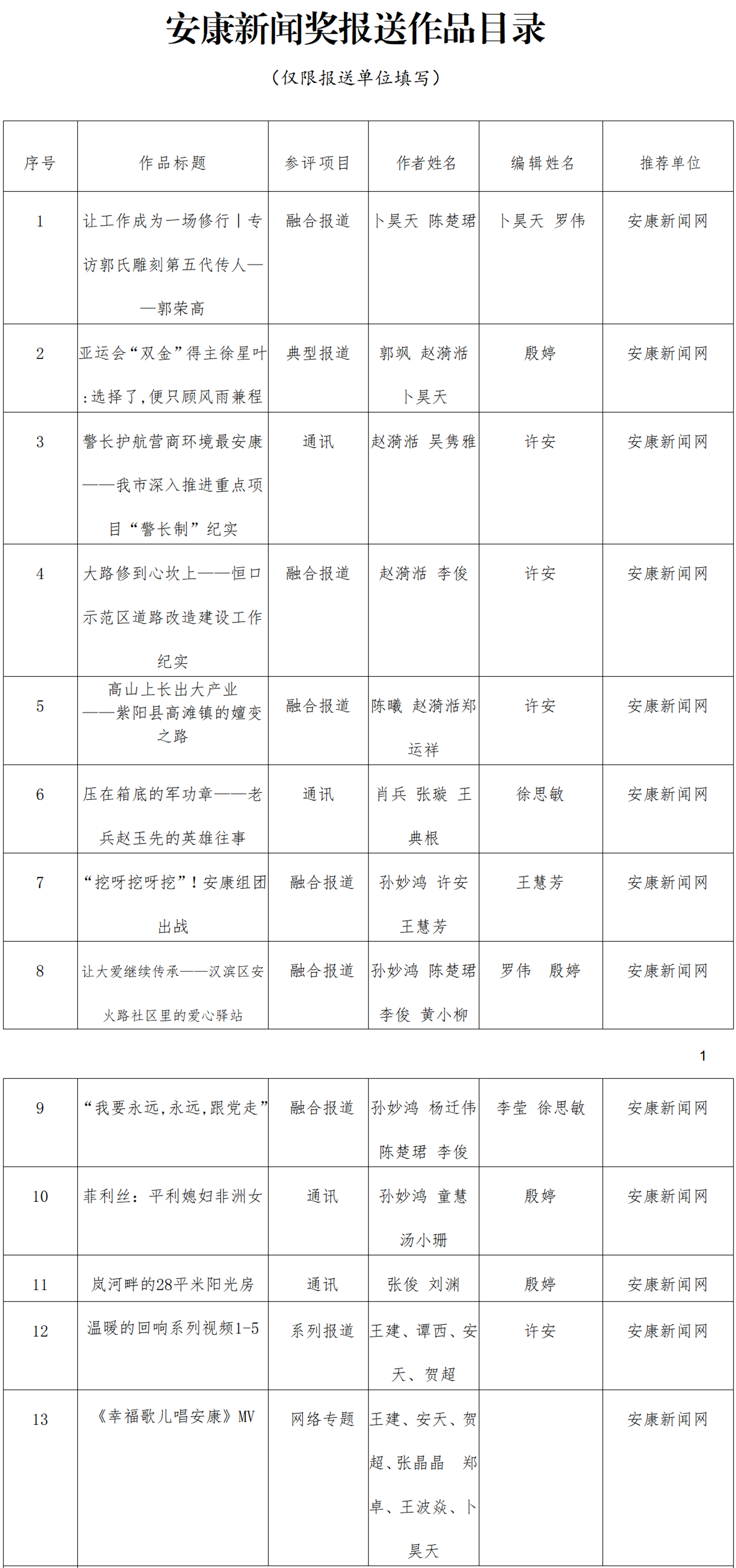經(jīng)過編委會推薦、社黨委研究決定,擬推薦以下13件新聞作品參評2023年度“安康新聞獎”。公示時間從2024年3月25日至2024年3月29日,公示期為5個工作日。如有不同意見,請向安康日報社機關紀委、新聞管理部反映。nyB安康新聞網(wǎng)