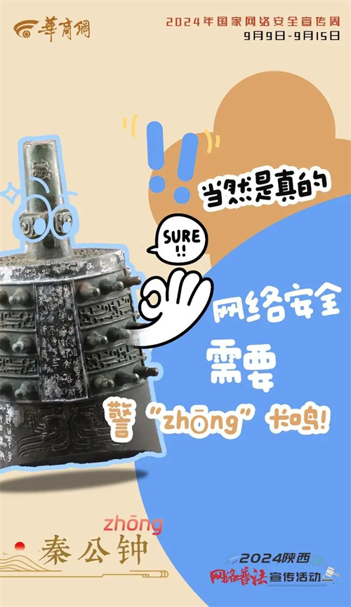 9月9日下午,陜西第十一屆國家網(wǎng)絡(luò)安全宣傳周將在寶雞市開幕。寶雞,曾出土無數(shù)青銅國寶,被譽為“青銅器之鄉(xiāng)”。今天“國寶”有話說,“點醒”你我他→ EBQ安康新聞網(wǎng)