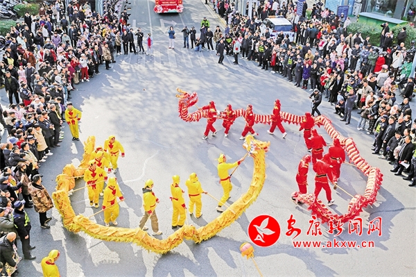 金州廣場的舞龍表演吸引眾多市民朋友駐足。李黎 攝Wpw安康新聞網(wǎng)