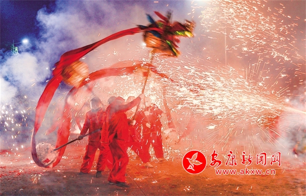 五里工業(yè)園區(qū)的“燒火龍”表演蔚為壯觀。李成寶 攝Wpw安康新聞網(wǎng)