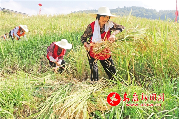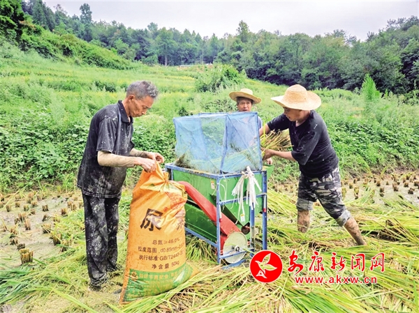 9月3日,平利縣長安鎮(zhèn)中原村“旱改水”項(xiàng)目區(qū)的130畝水稻相繼成熟并進(jìn)入收割期。吳永杰 攝kY4安康新聞網(wǎng)