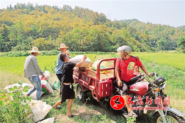 連日來,高溫天氣持續(xù),漢濱區(qū)吉河鎮(zhèn)吉河壩社區(qū)大片水稻已經(jīng)成熟,農(nóng)戶搶抓晴好天氣開鐮收割,一派繁忙的豐收景象。該區(qū)40萬畝秋糧作物開鐮收獲以來,農(nóng)業(yè)農(nóng)村部門先后組織調(diào)運(yùn)2000余臺(套)收割、脫粒等農(nóng)機(jī)參與秋收工作。李勝福 攝kY4安康新聞網(wǎng)