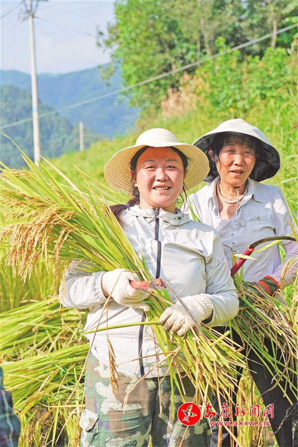 9月3日,以“豐收之稻 樂享滿田”為主題的稻作文化節(jié)在嵐皋縣南宮山鎮(zhèn)舉辦,村民們開鐮割稻,慶祝豐收。楊濤 攝kY4安康新聞網(wǎng)