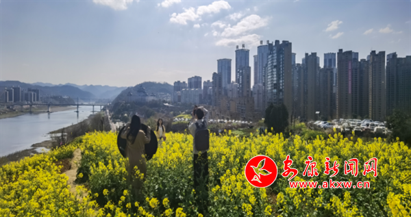 3月10日,安康城區(qū)安瀾樓西側(cè)江邊油菜花綻放,與碧水藍(lán)天相映成趣。(圖文/陳德模 羅德紅)