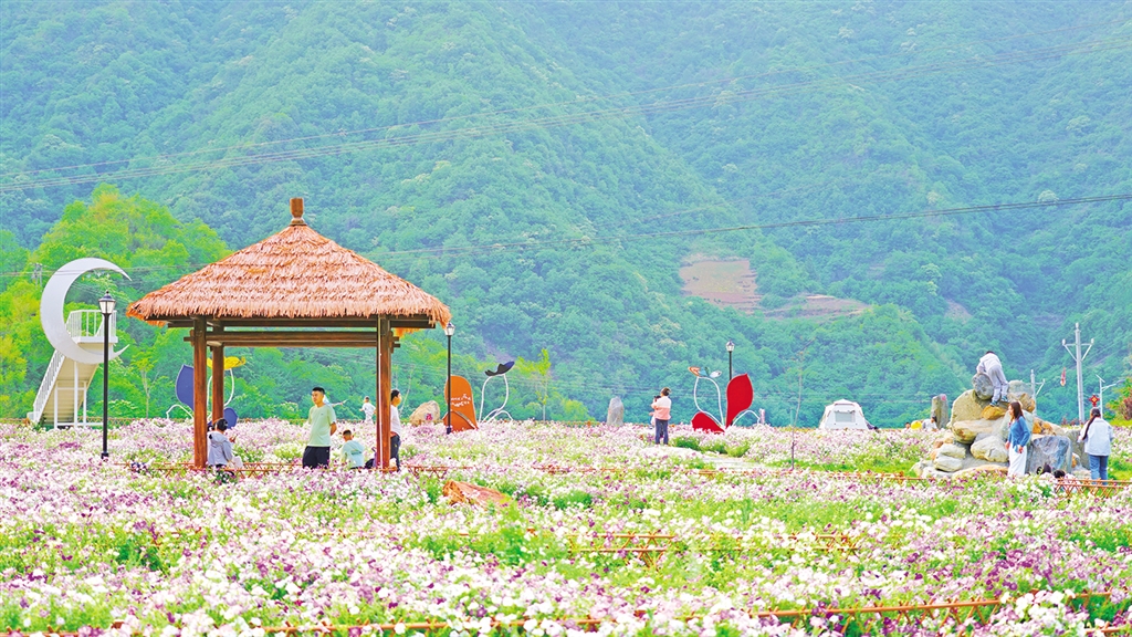 5月的白河,青山如黛,綠意蓬勃。乘車沿著縣城二級路走進位于構朳鎮(zhèn)涼水村的百福園花園,眼前驟然鋪開一幅色彩斑斕的畫卷。牽牛花如彩色小喇叭般昂首,小雛菊似亭亭玉立舞者般輕盈,格;ㄈ缪┯蛳勺影愀蓛羲匮,群芳爭艷間,將鄉(xiāng)村田園的質樸與浪漫詮釋淋漓盡致。草坪野餐、放風箏,露天營地等娛樂項目吸引了眾多游客紛至沓來。 (通訊員 周驍)