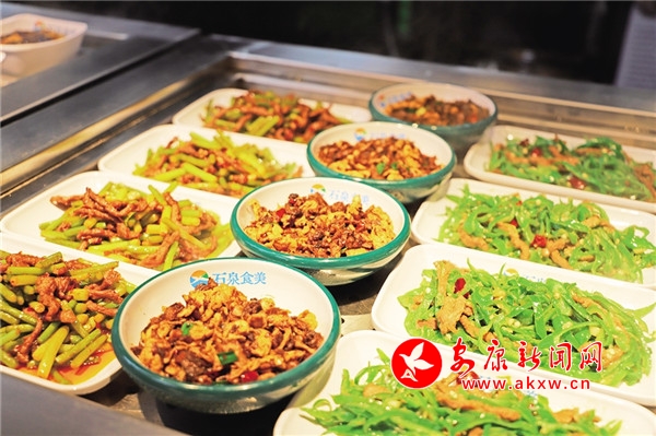 活動(dòng)現(xiàn)場(chǎng),鑼鼓喧天,食客如織,一道道美味的小碗菜在臺(tái)面上整齊排列。在顧客選購(gòu)結(jié)束后,只需將托盤(pán)放到收銀臺(tái)前掃描,即可快速自助結(jié)賬。經(jīng)濟(jì)實(shí)惠、方便快捷的小碗菜,已覆蓋堂食、外賣(mài)、一人食、家庭小吃等各種消費(fèi)場(chǎng)景,獨(dú)特的石泉風(fēng)味,更能讓顧客吃飽又吃好。