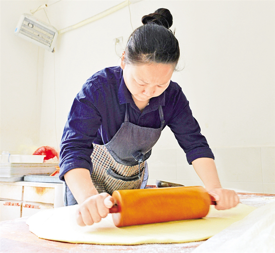 制皮、制餡、制酥、包酥、成型、蓋章、扎眼……四個人在操作時不言不語,只顧埋頭做活!