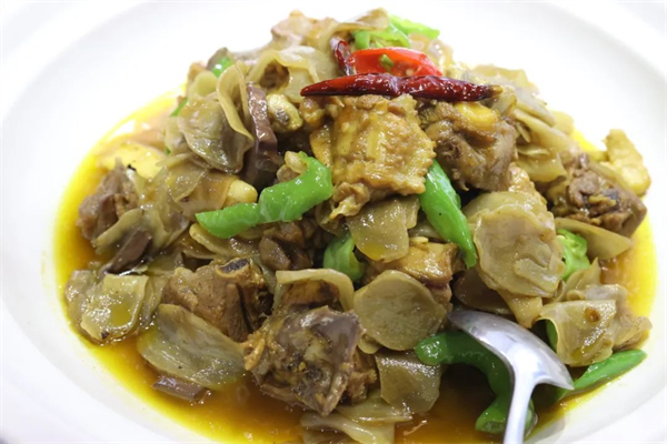 大塊的富硒土雞肉,火候上經(jīng)過嚴格把控。品嘗起來富有嚼勁,這種烹飪手法接近半炒半焗,健康又美味!
