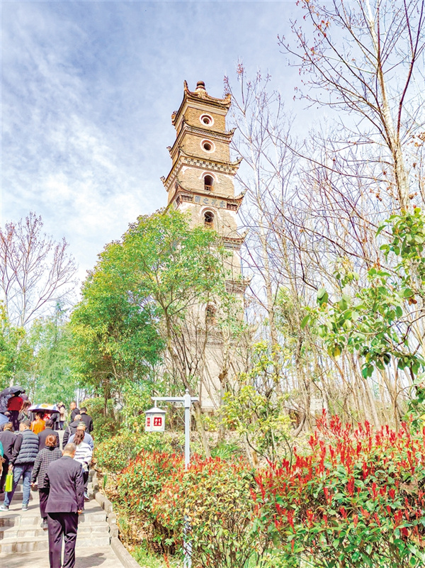 這時,塔側傳來歡快的鑼鼓聲,循聲望去,是一段十幾米的孝義文化長廊,一組男女或站或坐敲打著響器,使奠安塔不再寂寞。廊道的另一頭連接著奠安公園,環(huán)形觀景步道上擠滿了游覽的人。春分時節(jié),杏花正在萌發(fā),桃花含苞待放,倒是紅葉李花開正艷,細小如甲的花瓣布滿枝頭,零落軟泥上,雪白一片,仿佛成了李花的世界。舉目四望,花草清新,小學生在撿拾垃圾,胸前的紅領巾在陽光的照射下熠熠生輝,與周遭綠植映襯,絢爛了滿園春色。47E安康新聞網